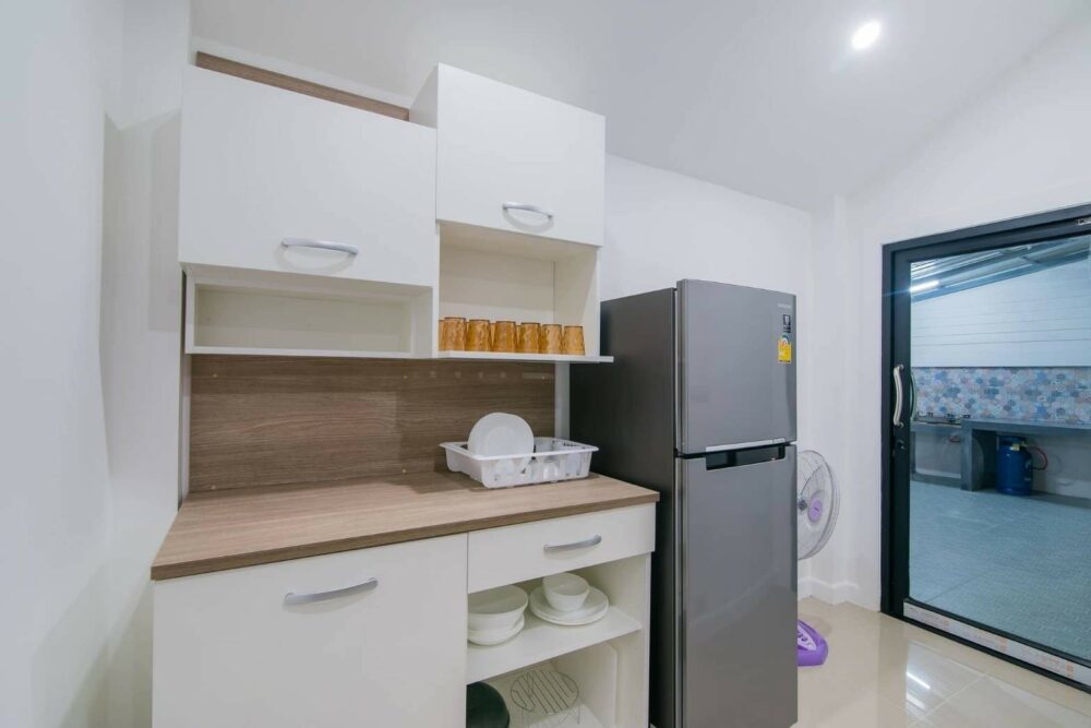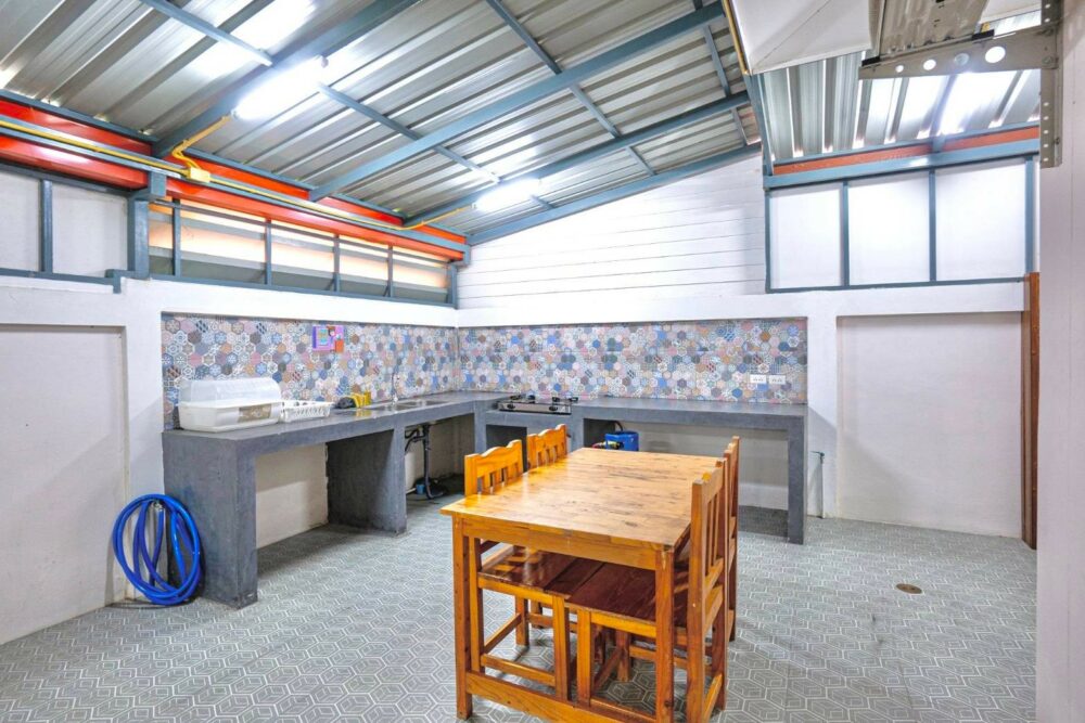 - ครัวขนาดใหญ่ พื้นที่กว้างขวาง มีหลังคาคลุมทั้งหลัง พร้อมอุปกรณ์ในครัวครบครัน ตู้เย็น กระทะ ไมโคเวฟ หม้อ หม้อหุงข้าว